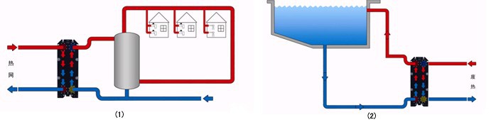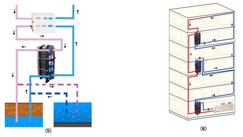 ??⑤地源、水源熱泵: 換熱器作為熱泵主機和開放式冷熱源的分離裝置,克服水質(zhì)對主機等敏感設(shè)備的腐蝕。(圖5