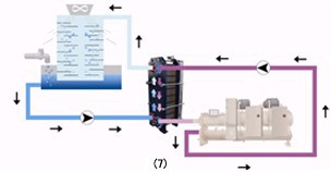 ??換熱器的使用將開式冷卻循環(huán)系統(tǒng)和機組的閉式循環(huán)系統(tǒng)分隔開,有效的保護了機組閉式循環(huán)系統(tǒng)的潔凈,延長了機組的使用壽命。(圖7